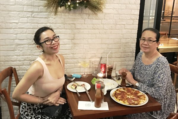 My mom and I at dinner after our facials