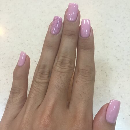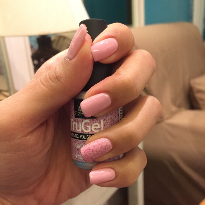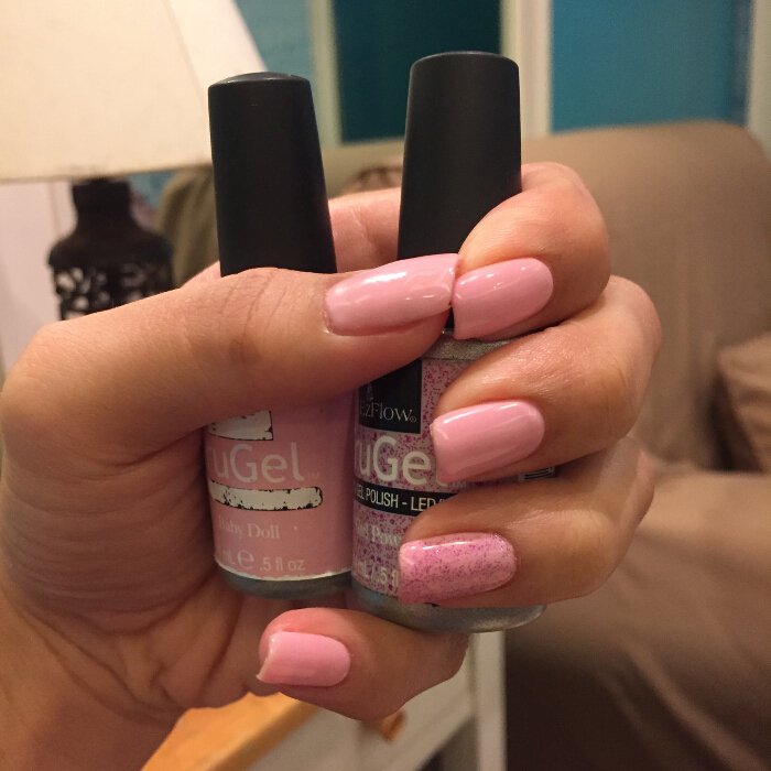 They use EzFlow Tru Gel polish and offer a wide variety of colors. Although they don’t have the painted color palettes, I looked at the labels for shades that appealed to me and opened the bottle to see if I like the actual color. Since I’m currently into anything blush and deep red, that’s what I chose for my fingertips and toes respectively. Both shades are very feminine, very me, chic, and easy to match with all my outfits for the next couple of weeks or so—the minimum length of time they’re supposed to last—easily lending a touch of glam to my overall look. I also wanted a shimmery accent, so I layered a pink glitter polish (Girl Power) over the light pink base (Baby Doll) on the ring finger nails (see below).