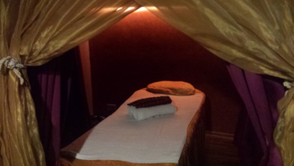 They have a loft where all the body treatments are done, with curtains separating each treatment bed. This is where I got my body scrub and massage. The treatment area is dimly lit and filled with a relaxing aroma, with calming music playing softly in the background.