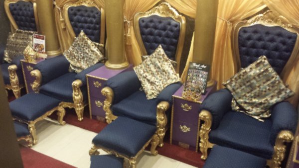 Princess Hazel has cozy and very girly interiors, mostly done in gold and purple—my favorite color. There are crowns and trinkets beside each comfy mani-pedi chair, with witty, empowering framed quotes on the walls.