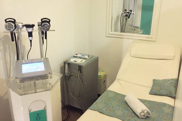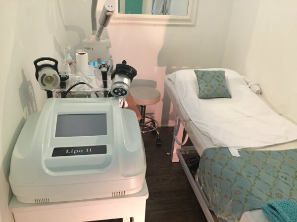 Each session starts with cavitation, which burns up to the third layer of fat. The machine head is rubbed on the area for 15-20min (depending on machine brand used—they have two; the two machines are in the photos above and below). The machine generates a beeping/buzzing sound that only I can hear clearly; the therapist supposedly only hears it softly.