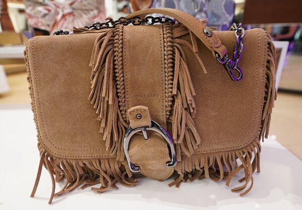 The edges of the bag are elegantly trimmed with a tone-on-tone or contrasting braided leather band. This ultra-feminine detail also appears in the middle of the flap on the messenger bag. The nickel saddle buckle conjures up the equestrian spirit that Longchamp treasures.