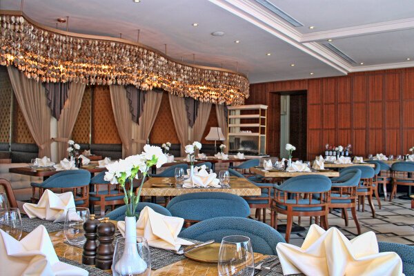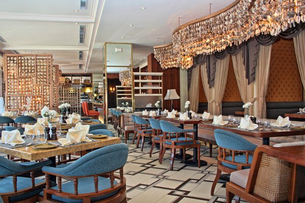 The restaurant retains the Grand Dame’s iconic lavish display of original cowrie shells cast in a soft amber glow, further adding a dramatic touch to its lighting fixtures. This beautiful backdrop and understated elegance make for a dining experience to remember.