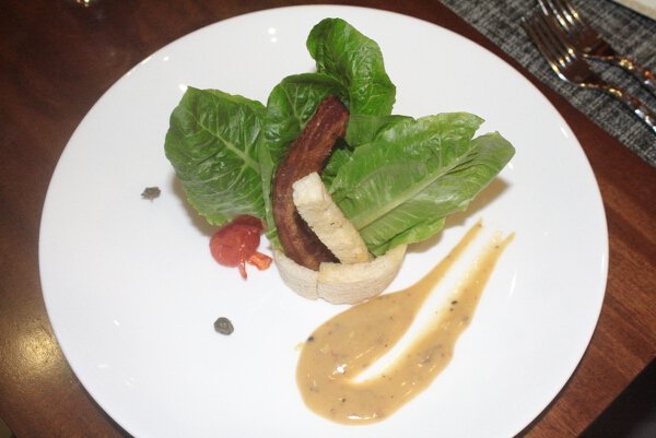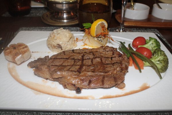 The Deconstructed Maitre D’Caesar Salad is quite a spectacle created by their Maitre D’ Arthur, who boasts that he makes the best Caesar dressing, right beside our table while we watch. I may have to agree. He also warns weight watchers who think that Caesar salad is diet friendly: It’s not. Again, I have to agree since I saw just how much olive oil is poured into that dressing. But if you really just want to eat a salad you can enjoy, this is it, as you’ll see and taste for yourself all the fresh ingredients that make up the rich and thick sauce that’s not runny like other instant Caesar salad dressing. It also has egg yolk, salt, and pepper to keep the flavor interesting and savory. The table-side preparation is social media-friendly, too. The salad itself is made of Romaine lettuce, capers, grated parmesan, a strip of bacon, buttered bread stick, and baby tomato in a bread ring. I enjoyed this with a glass of sauvignon blanc.