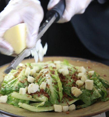 Plating of the Maitre D’Caesar Salad, Deconstructed