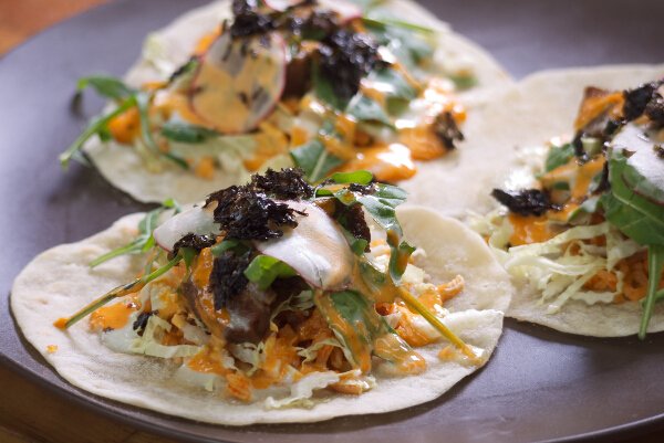 Meat-lovers like me, relax: Earth Kitchen is not a complete vegetarian restaurant. While it has several items on the menu for vegans to get their fix, and they certainly use a lot of vegetables in their dishes, they also serve a wide selection of delectable dishes for non-vegetarians. Did I tell you my favorite dishes here are a huge slab of bacon and Beef Bulgogi Soft Taco?