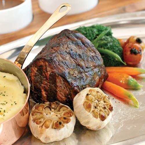 Our formal meal began with an elaborate rendition of the freshly tossed Maitre’D Caesar Salad–they prepared our salad right in front of us. But soon, the purpose of my visit was deliberately rolled in: the broiled-to-perfection Angus beef tenderloin, which they cut up for everyone right in the middle of the dining hall. It was served medium, and I loved how juicy, tender, and perfectly flavored it was. The gratin it came with is simply to die for, and of the three sauces they served, I enjoyed the mushroom gravy and peppercorn gravy the most. Of course, what’s a good steak lunch without some great wine? Good thing they served us a smooth, sweet red that I drained to the last drop.