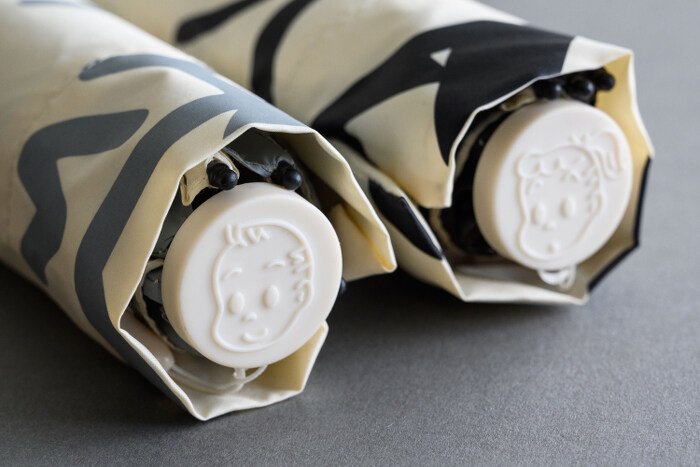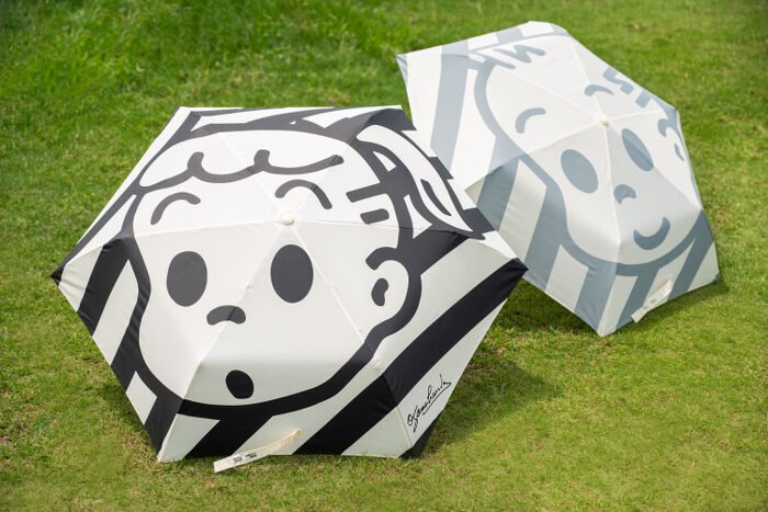 Throughout the years, Osamu Goods has introduced a wide array of umbrellas, each with its own unique flair. For this special collaboration, Harbour City sought the expertise of celebrated Japanese graphic designer Kazunari Hattori, one of Osamu Harada’s favorite designers. Stepping away from the brand’s signature vibrant style, Hattori enlarges the endearing figures of Jack and Jill to cover the entire umbrella canopy and opts for a monochromatic style: with soft and subtle beige tone as the base color, complemented by bold gray (Jack) and black (Jill) lines. The umbrella handle incorporates a thoughtful detail, featuring their charming portraits as exquisite adornments. Meticulously crafted from lightweight and water-resistant materials, the folding umbrella weighs a mere 140 grams, ensuring effortless portability, making it a perfect fit for any handbag.