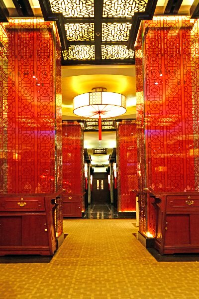 The interiors of Red Jade are beautiful, exuding understated elegance and refinement. Red is the dominant color on the chairs and walls with intricate and ornate details, surrounded by decor and figurines. The art on the walls are said to tell the story of the philosopher Confucius.