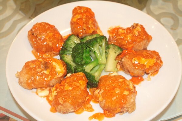 Fried Stuffed Scallops with Crab Roe Sauce