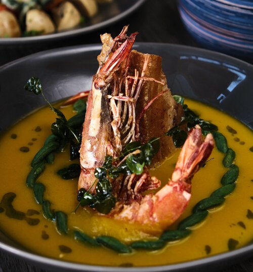 My husband also tried the L3 – Latik, Liempo, and Lukon (P595), a dish made up of three dishes: pureed kalabasa served with a medley of vegetables and topped with fried pork belly and king prawns. My husband has always been fond of linatik, an Ilonggo soup made of kalabasa mixed with vegetables and pieces of pork, and I’ve also grown to appreciate it. The Granary’s version is richer and thicker than the linatik we’re used to, and spiced up with ginger for that unique flavor. They say the dish can be shared by two (if you have other orders)—or one hungry diner! Those king prawns are definitely huge!