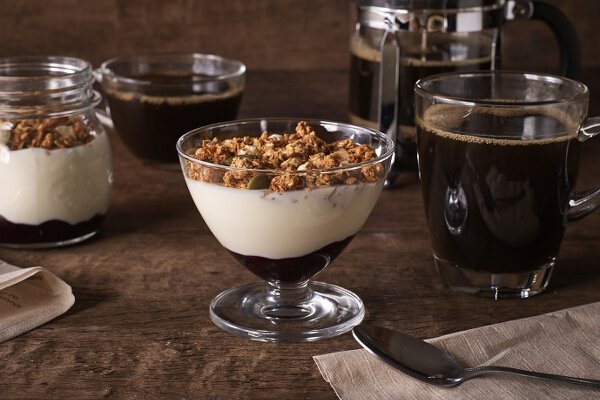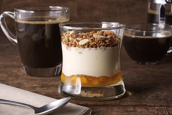 The Blueberry Greek Yogurt Parfait is made with creamy Greek yogurt layered with a sweet and tart blueberry compote and then topped with crunchy oat granola. There’s also the Mango Greek Yogurt Parfait, made with sweet mango compote and Greek yogurt, finished with a sprinkling of crunchy oat granola.