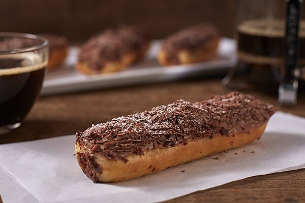 The Midnight Dream Cake (P165/slice, P1,480/whole) has layers of moist and chewy fudge brownie, light vanilla sponge cake, crunchy hazelnut paste, and velvety milk chocolate mousse, topped with dark chocolate glaze. Meanwhile, the Chocolate Doughnut Eclair (P85) is basically a doughnut filled with luscious cream and milk chocolate.