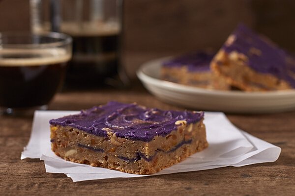 What I’m really excited to try is the Mango Purple Yam Bar (P85), a dense and chewy butterscotch bar with mango bits and purple yam. I love how Starbucks is really capitalizing on purple yam for their desserts!
