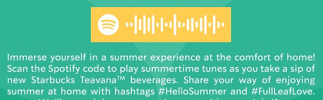 To complete the summer vibe within the comforts of home, scan the Spotify code below to play summertime tunes as you take a sip of your new Starbucks Teavana beverages.