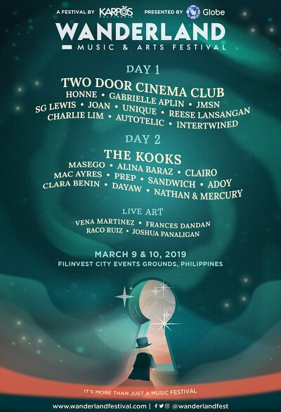 Ironically, I’M missing Wanderland Festival on March 9-10 because I’m staying put in Iloilo after an almost two-week travel spree that had me traipsing all over the country from Tagaytay to Boracay to Cavite and back to Manila. But, I wouldn’t want YOU to feel FOMO as I currently do, so make sure you head over to the Filinvest City Open Grounds in Alabang, Muntinlupa City this weekend for Globe Telecom and Karpos Multimedia’s annual music and arts festival.