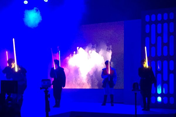 Lightsaber salute led by Globe CEO Ernest Cu (center) and Globe Senior Advisor for Consumer Business Dan Horan (right) at the opening of the Globe-Star Wars Galactic Celebration last Friday, Dec. 11.