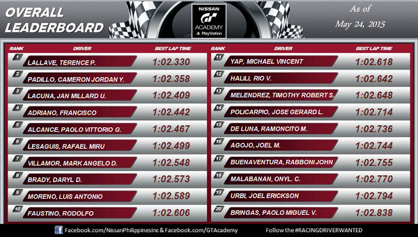 GT Academy Live Event Results as of May 24, 2015