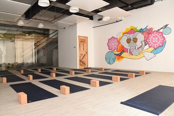 Completing its four-part approach to wellness, the studio makes room for artistic installations and pursuits. Even the yoga rooms themselves—even the locker area, I wish I can show you, haha—are all decorated with lively and colorful murals.