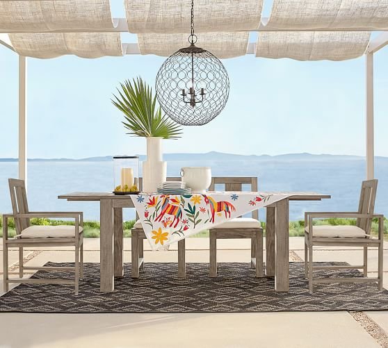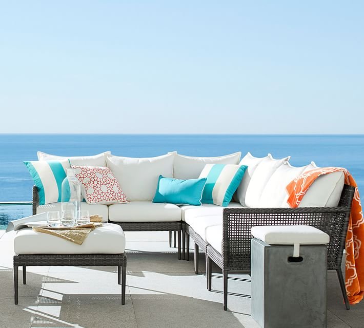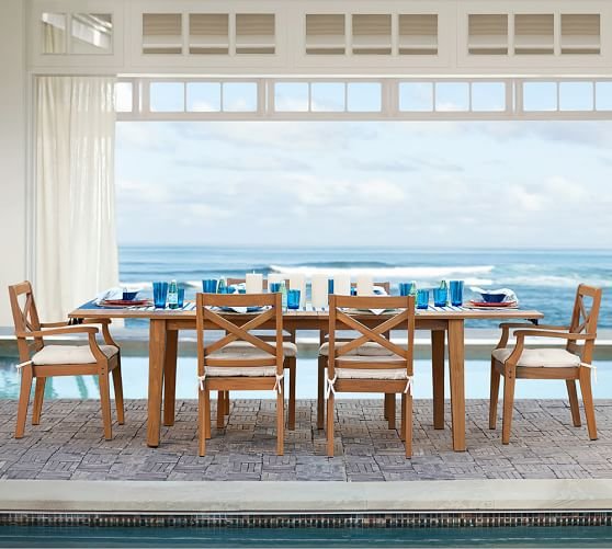 Another approach to fully capture the seaside vibe is to extend your oceanic escape outside with Pottery Barn’s Cammeray, Hampstead, and Indio Living and Dining Collections that offer a diverse selection of home styling inspirations and bring a chic, beach resort feel into your outdoor spaces.