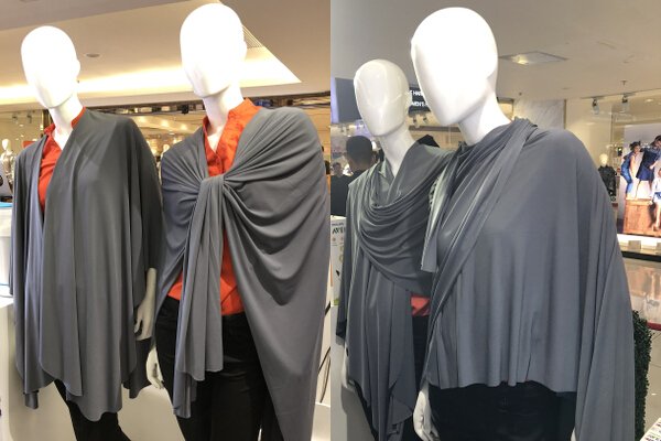 For this collaboration, Rajo created a stylish wrap for mothers to feel confident and comfortable when feeding their baby. Done in an elegant gray fabric that goes with any outfit—from day to night, casual to business to formal (yes, you can wear it like a shawl over your evening gown at weddings)—it can be worn in four different ways, as you can see in the image above. Rajo says it also doesn’t stain. He designed it in such a way that not only will breastfeeding moms not be fussy about it, it will also make them feel more beautiful and chic even when breastfeeding.