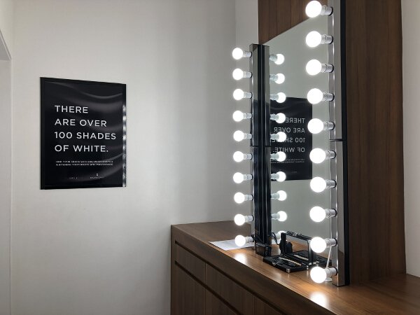 My teeth are lighter after the first 20-minute session of teeth whitening. Can I just say their lighted vanity mirror is so selfie-friendly?