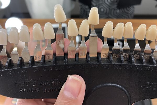 Step 1: Initial Assessment. The first step is checking the shade of your teeth using a teeth shade guide. It’s done in this room that looks like it belongs more in a beauty salon than a dental clinic, what with a lighted Hollywood-style vanity mirror at the center of it all.