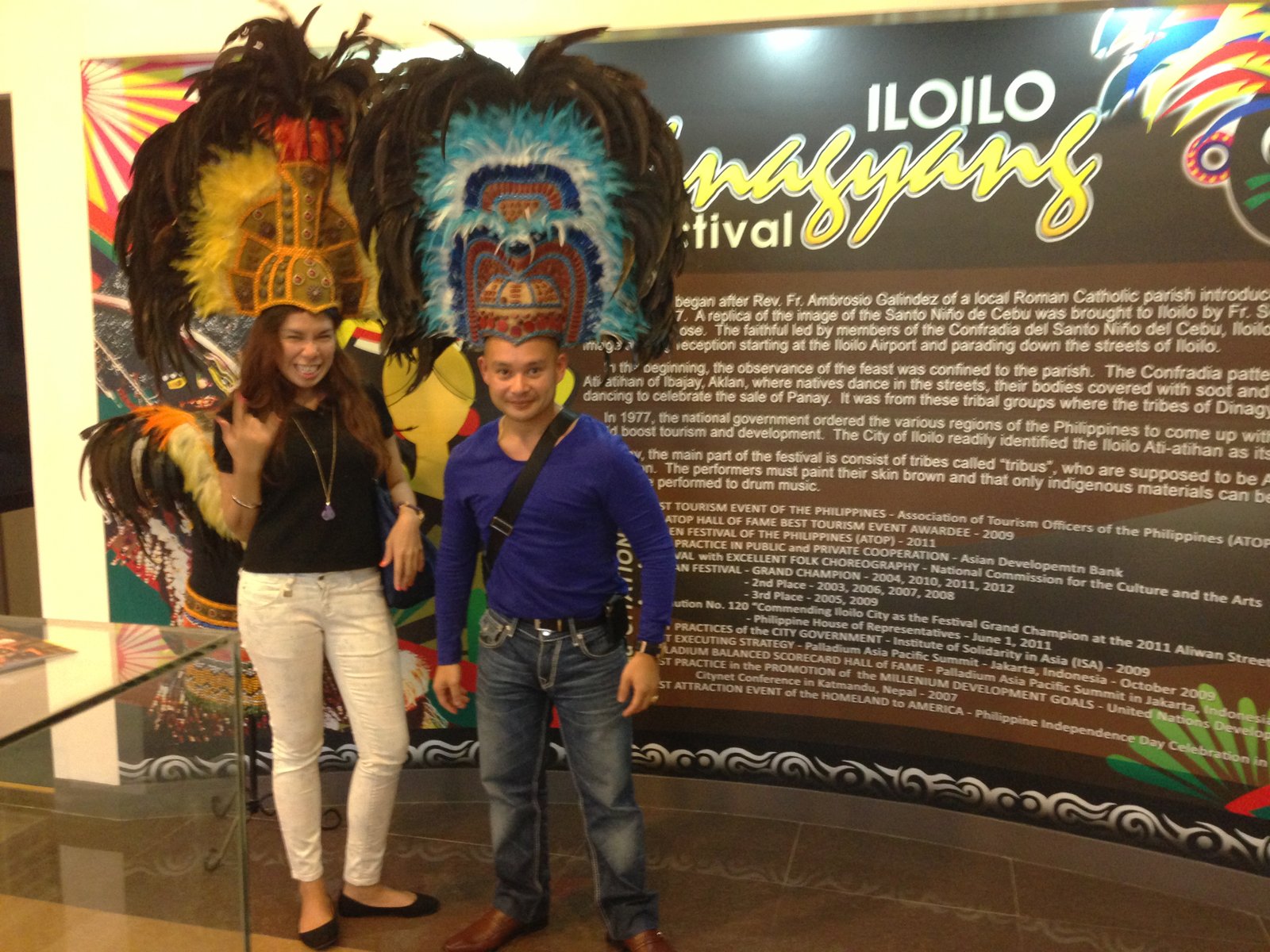 Jessie and I, wearing a Dinagyang headdress