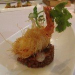 Prawn with Kaffir Cloud over Teriyaki Risotto